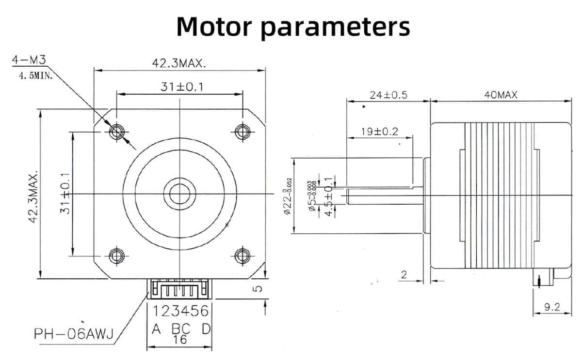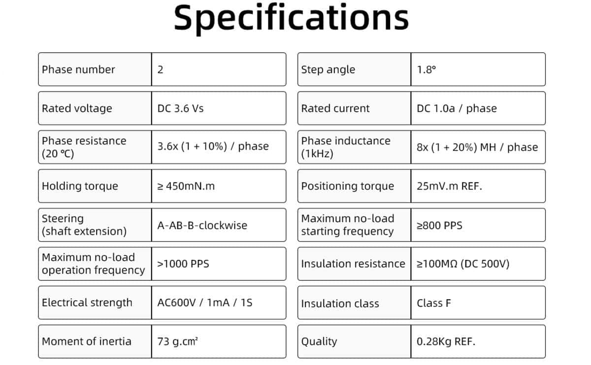 Specifications of 42 stepper motors: