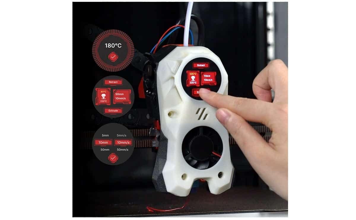 - The screen displays important information through KNOMI UI, such as heated bed temperature, nozzle temperature, leveling status, printing progress, etc.