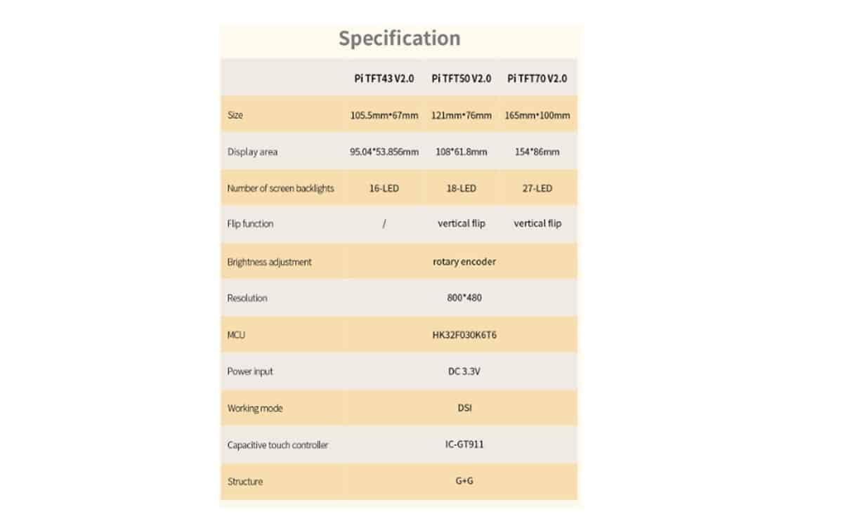 Pi TFT43, Pi TFT50 V2.1, Pi TFT70
