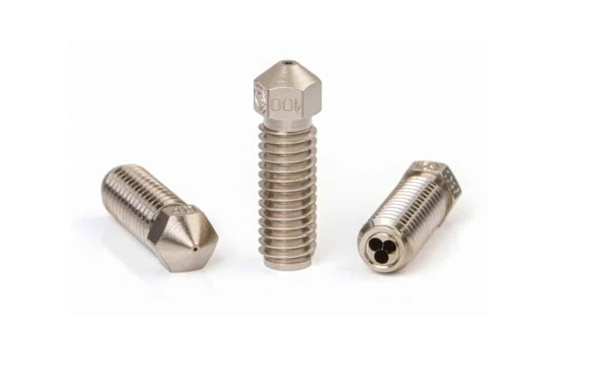- Nickel coated nozzles have more corrosion resistance and lower coefficient of friction, which allows slicker feeding of material and delays plastic adhesion to the nozzle’s surface.