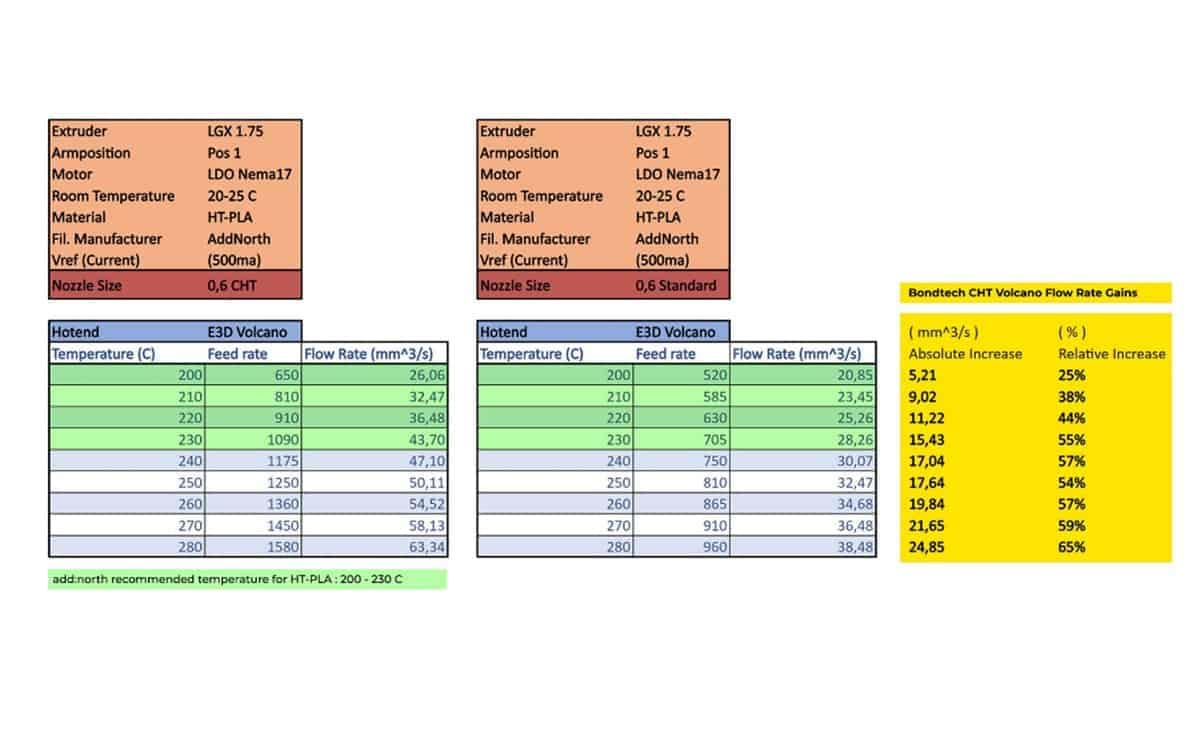 - Bondtech CHT volcano nozzle Higher melt capacity by increasing the surface area of the heating walls