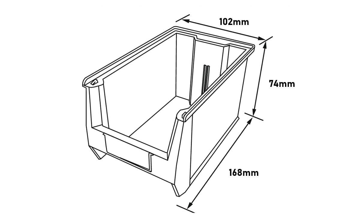 - With outside dimensions of 168 × 102 × 74 mm and inside dimensions of 145 × 86 × 66 mm, the FPO Bins provides an effective height of 38 mm, making it perfect for handling small-sized produce, parts, or packaged goods.