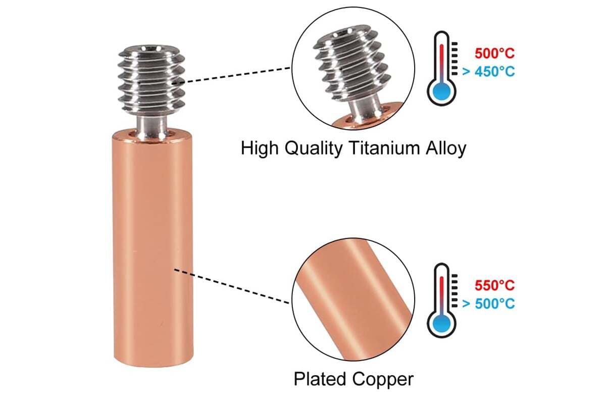 - The copper section offers excellent thermal conductivity, allowing for rapid heat transfer, while the titanium part provides superior strength and thermal isolation.