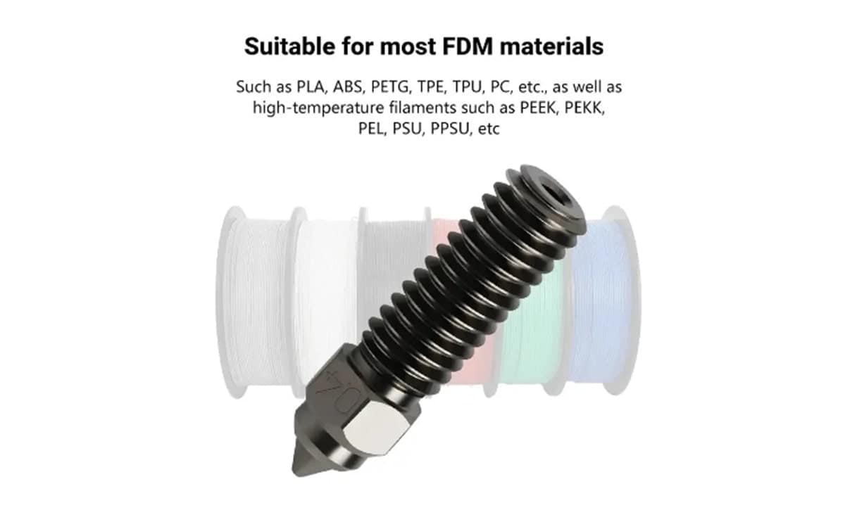 - These nozzles are designed to withstand higher temperatures and are more resistant to wear and tear compared to standard brass nozzles. This makes them suitable for printing with a wide range of materials, including PLA, ABS, PETG, and more.