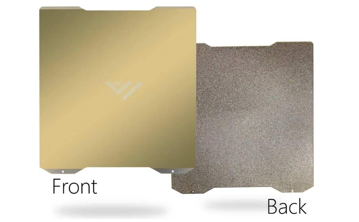 - One side features a textured PEI powder-coated surface for enhanced durability and better adhesion for challenging prints, while the other side is equipped with a smooth PEI film for flawless, glass-like finishes. Choose the side that fits your printing needs and enjoy unparalleled versatility.