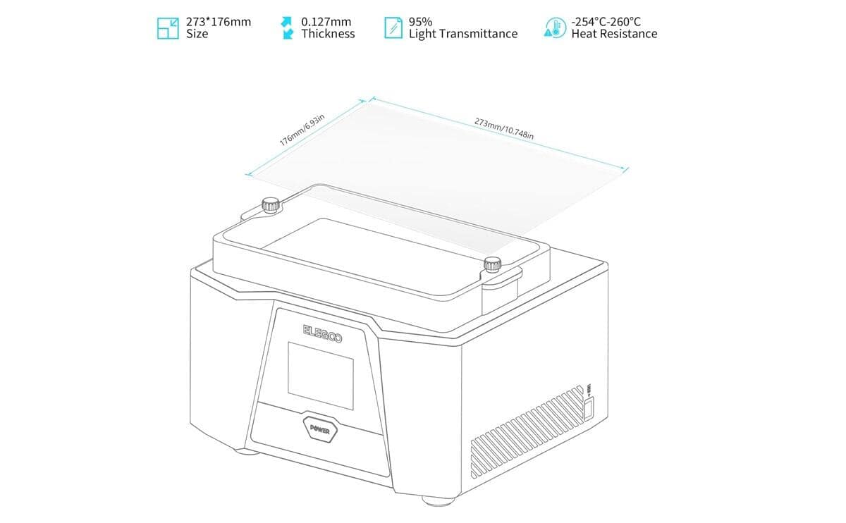 ELEGOO PFA Release Liner Film Size – 273×176 mm, 0.127mm Thickness
