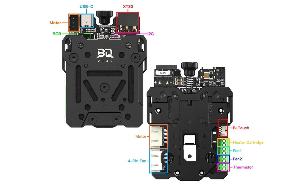 - Expansion Interface: I2C, RGB, Probe, 2x2pins, 4-pin fan (fan voltage selectable).