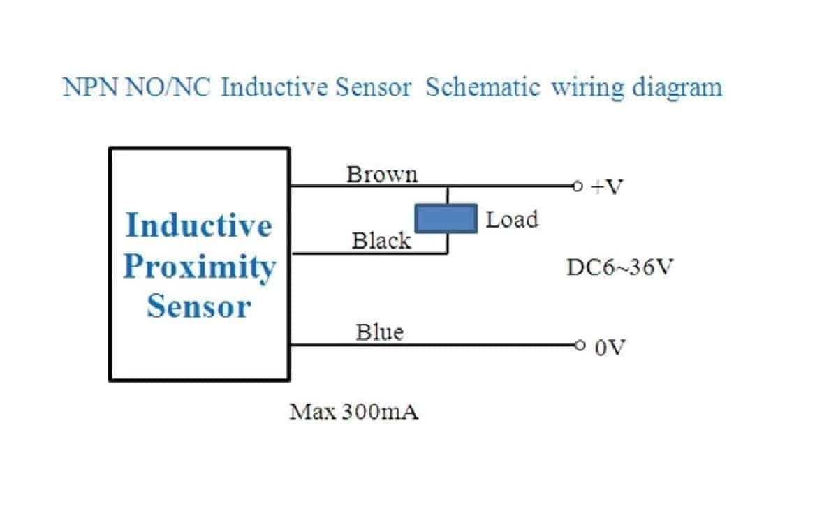- Internally this sensor is wired like an NPN transistor; the base pin of the transistor is triggered when the metal object is at a distance of 4mm. The sensor operates at 6 – 36VDC and will output the same voltage on the output wire. Because of the higher voltage, the output will need to have the logic level shifted to a lower voltage to operate with a Raspberry Pi or Arduino. To wire up this sensor: Brown = DC in: (6 – 36VDC) , Blue = Ground , Black = Output Signal .