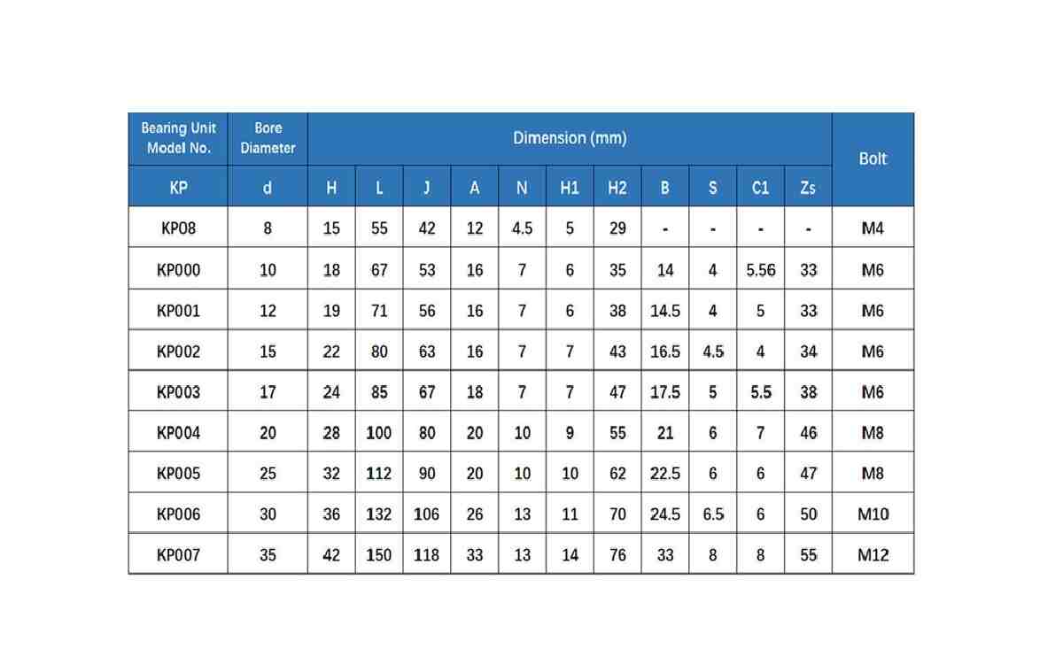 • KP001 bearing featuring a durable aluminum or zinc alloy housing with a high-quality chrome steel insert, this unit offers excellent load-bearing capacity, smooth operation, and long service life.