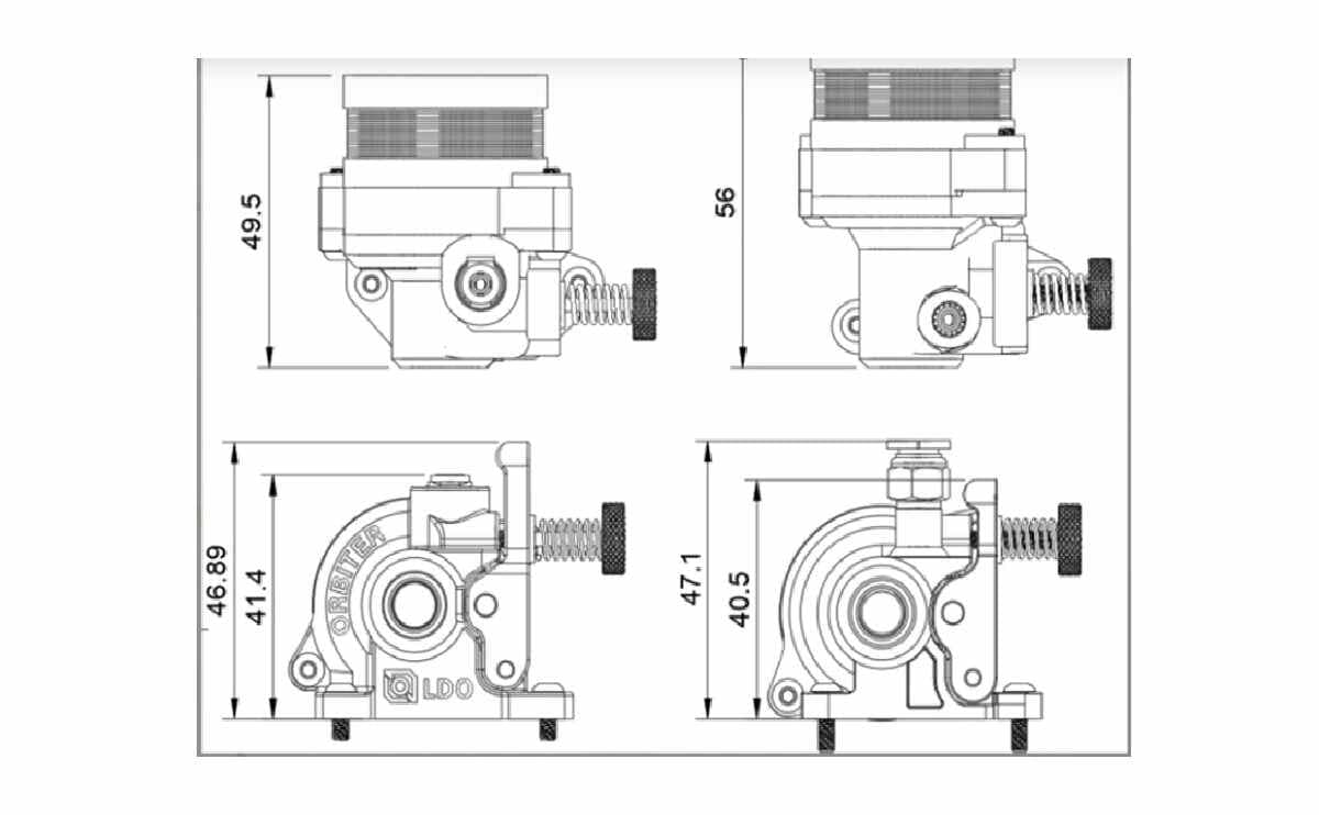 - LDO Orbiter V2.5 Extruder is engineered with a compact design that reduces weight on the moving parts of your 3D printer, contributing to more stable and faster printing speeds.