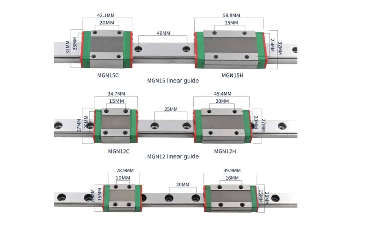 Linear Guide Rail MGN Blocks CNC Linear Rail Slide for 3D Printer and CNC Automations