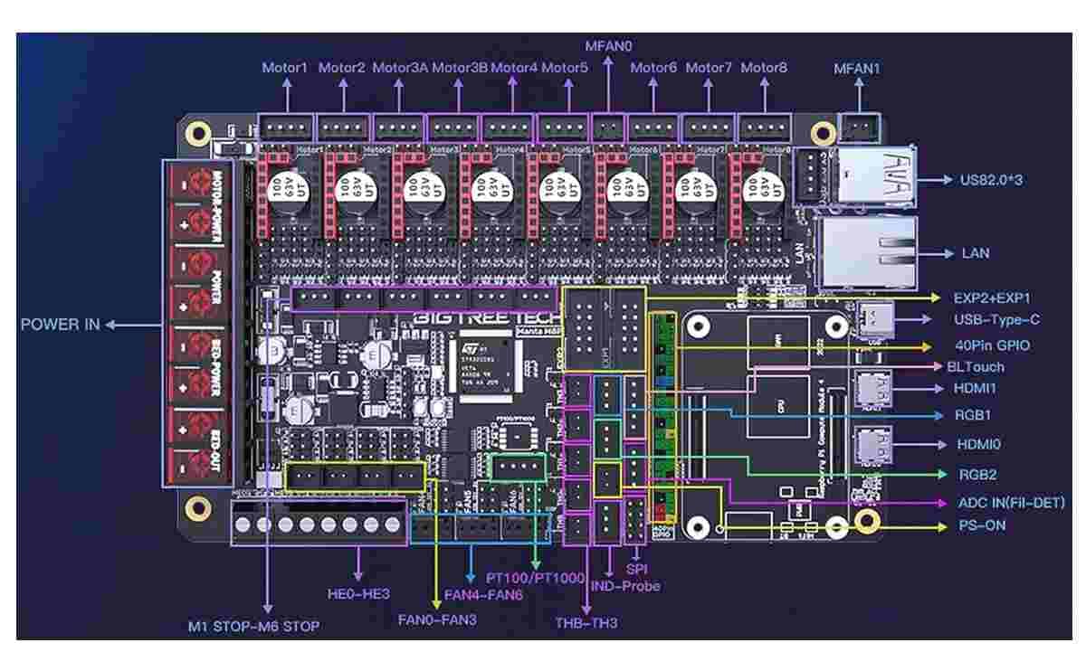 The Manta M8P V1.1 by BigTreeTech is an advanced, high-performance control board designed for 3D printing enthusiasts and professionals.