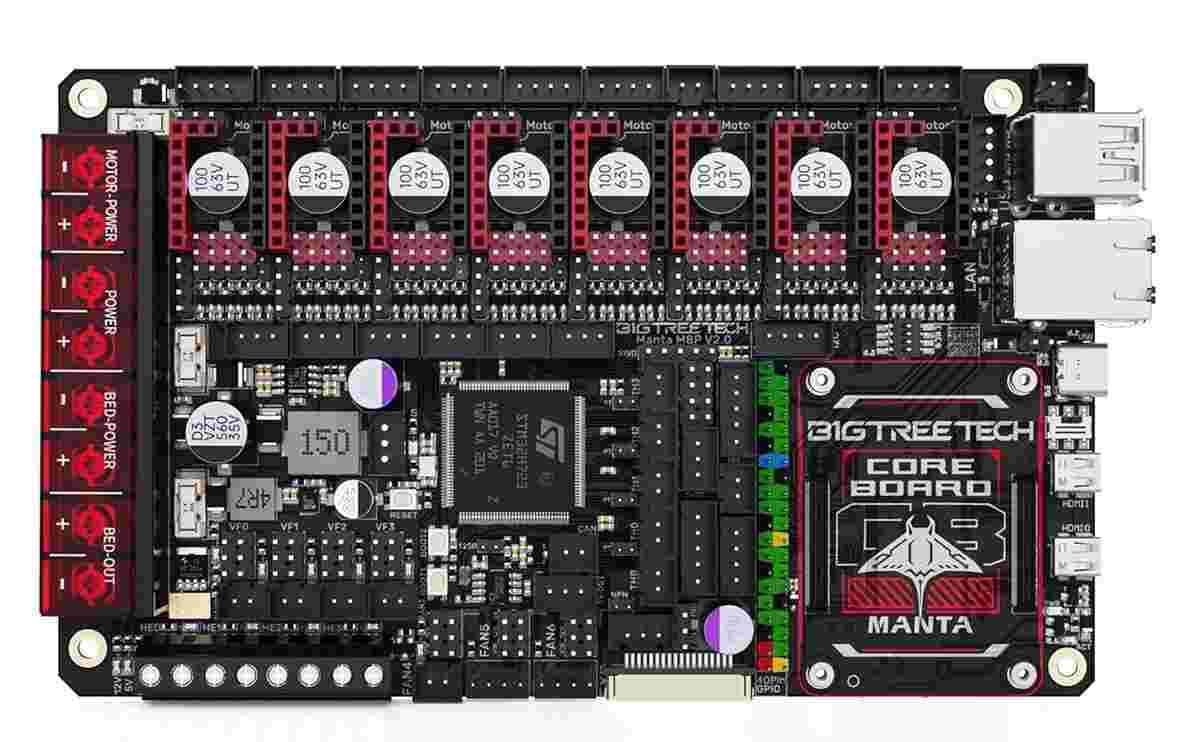 The Manta M8P V2.0 by BigTreeTech is a cutting-edge control board designed for advanced 3D printing applications.