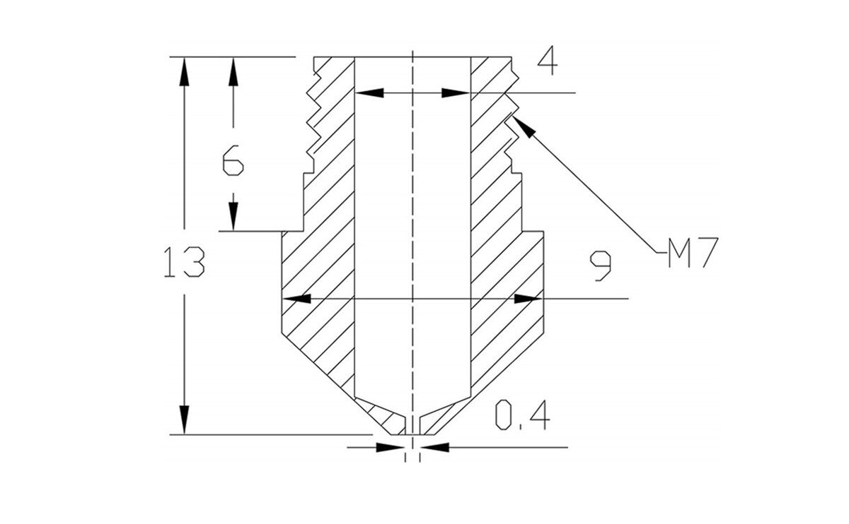 - It is with a 0.4mm diameter, is crafted from high-quality brass. This material choice ensures optimal thermal conductivity and durability, making it ideal for consistent and high-precision 3D printing.