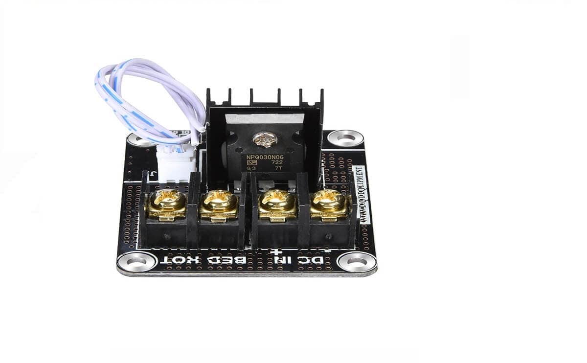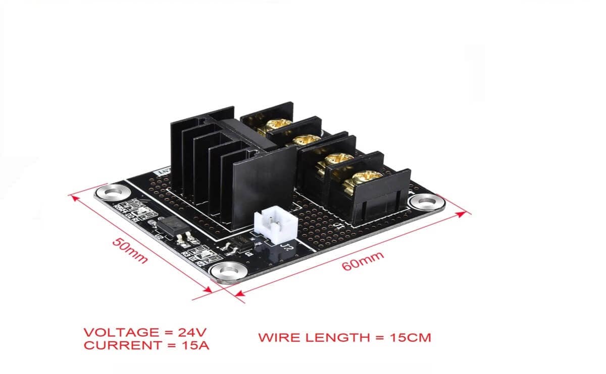 - MOSFET 15A for heatbed Heating Controller is specifically designed to handle high currents up to 15A, making it ideal for powering the heating elements in your 3D printer. Whether you’re working with a heated bed or extruder, this controller provides precise temperature control and stable power output, ensuring consistent and accurate printing results.