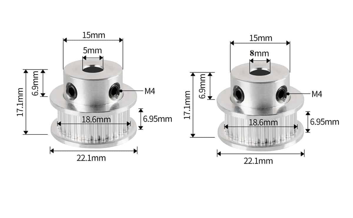 - 1 piece of Motor pulley 30 teeth 5mm/8mm bore.