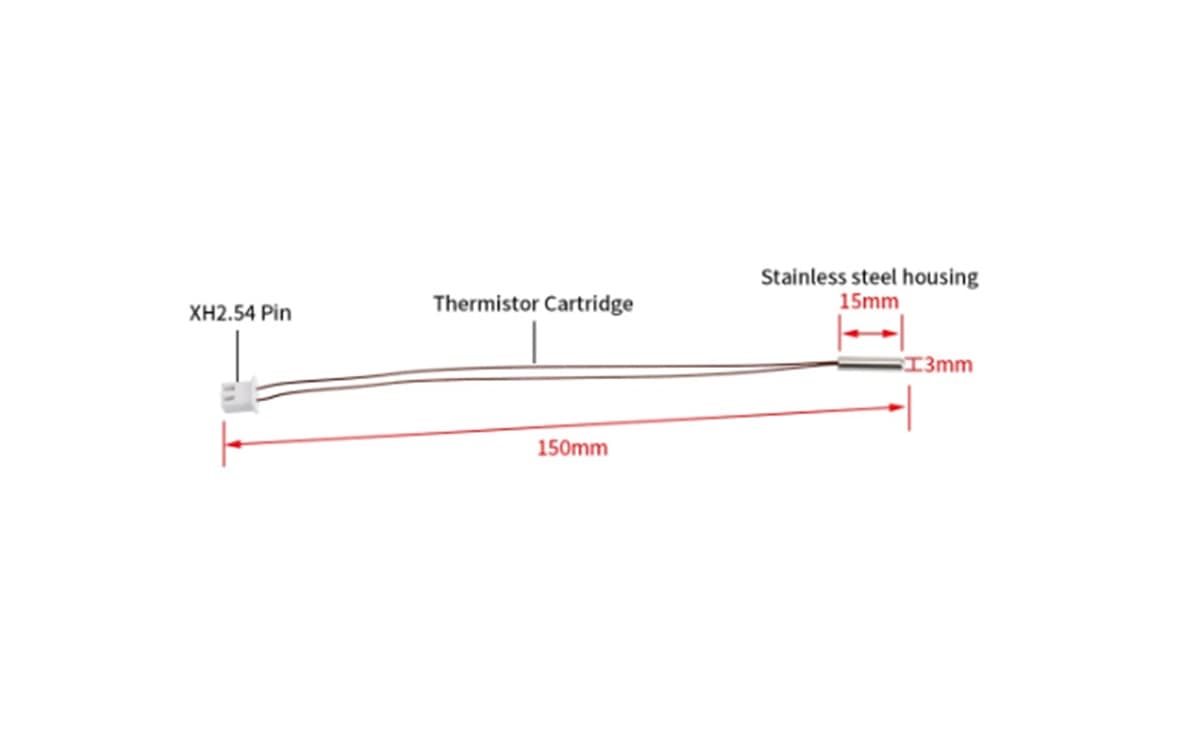 - The NTC temp sensor is equipped with an XH2.54-2P terminal, making it easy to connect to your printer’s control board.