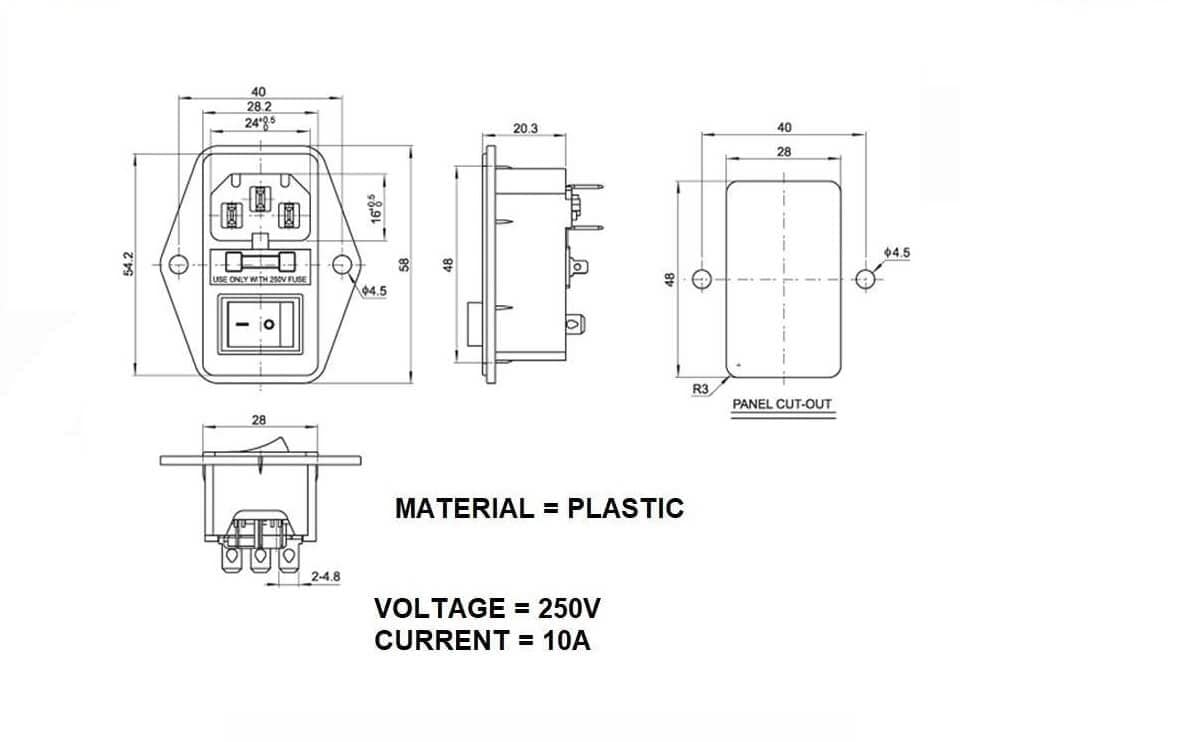 Power Socket 10A 250 V 3Pin IEC320 C14 AC Inlet Male Plug Socket With Fuse Switch for 3D printer.
