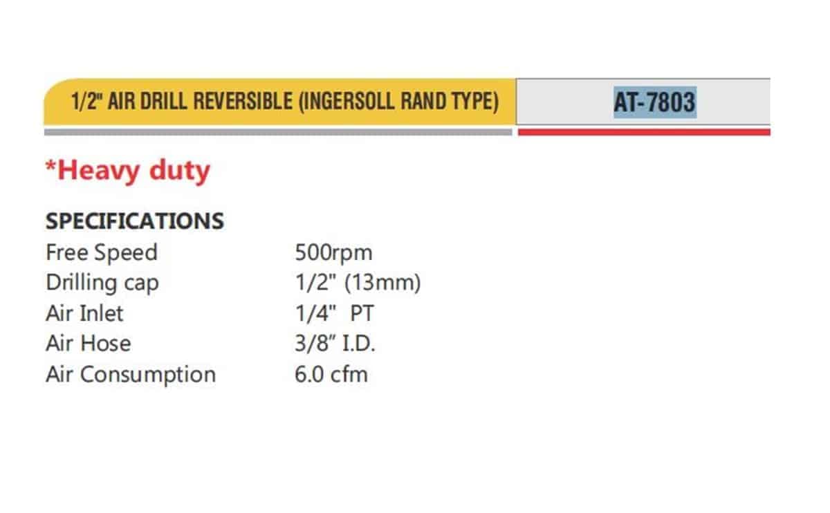Home » Pneumatics » Pneumatic Tools » Professional Pneumatic Tools 1/2″ AIR DRILL REVERSIBLE (INGERSOLL RAND TYPE)