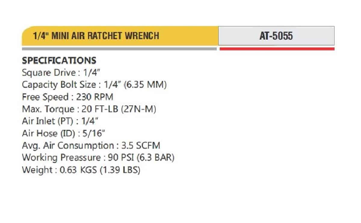 Home » Pneumatics » Pneumatic Tools » Professional Pneumatic Tools 1/4” MINI AIR RATCHET WRENCH