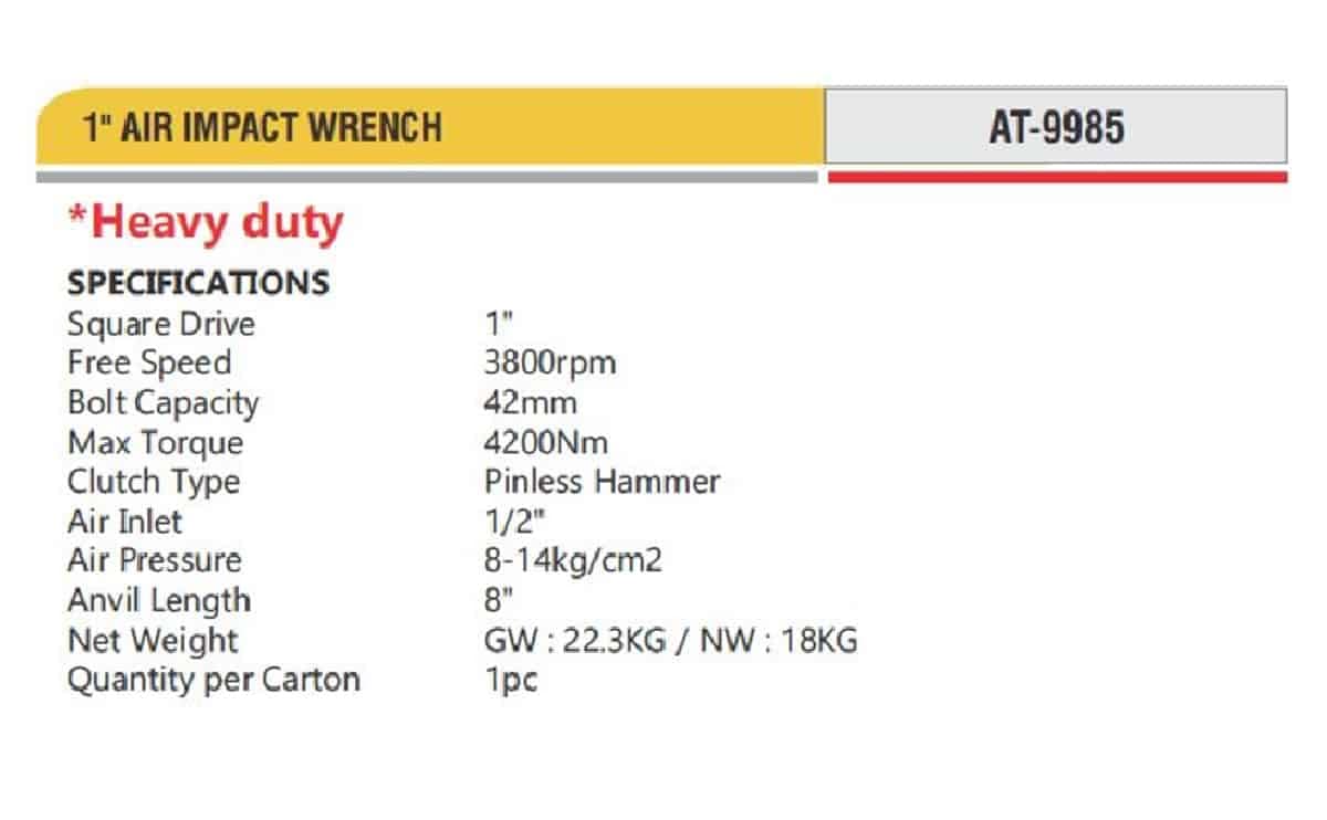 Home » Pneumatics » Pneumatic Tools » Professional Pneumatic Tools 1″ AIR IMPACT WRENCH Heavy duty