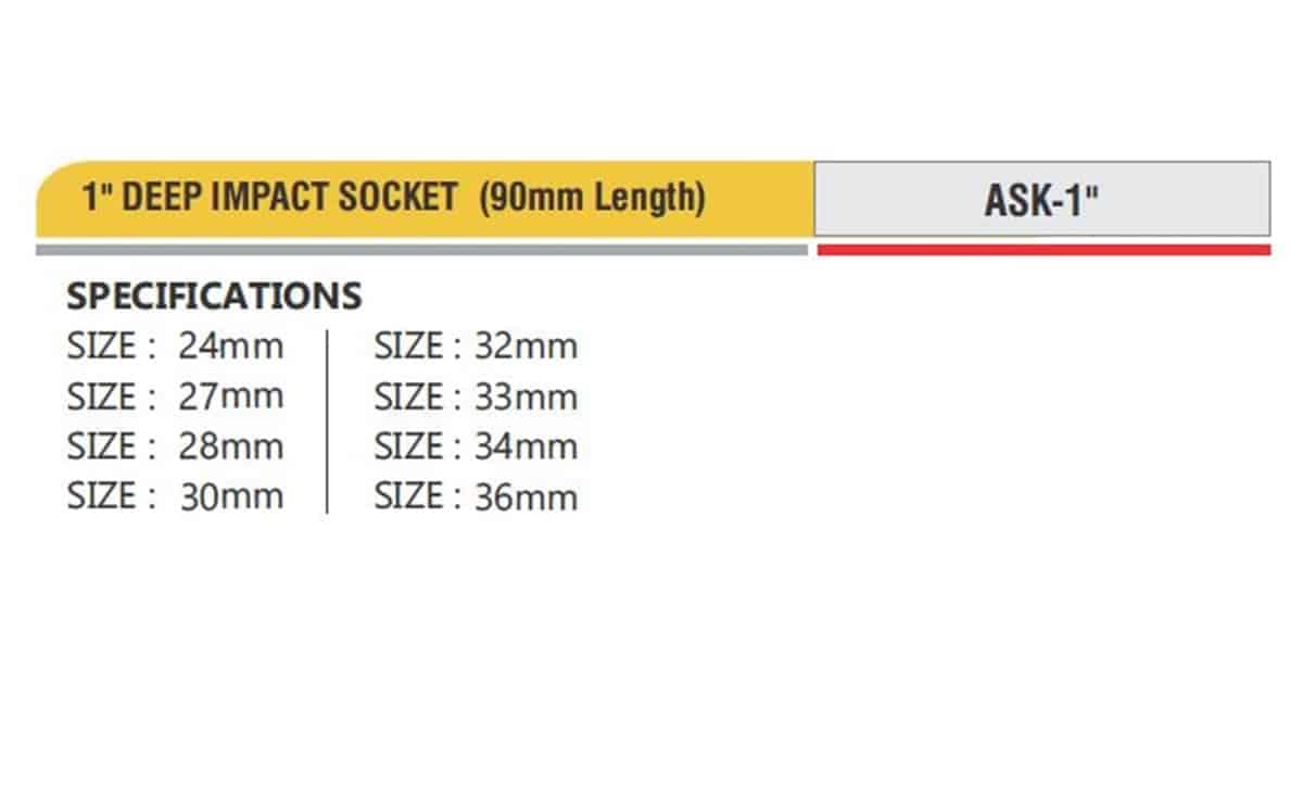 Home » Pneumatics » Pneumatic Tools » Professional Pneumatic Tools 1″ DEEP IMPACT SOCKET (90mm Length)