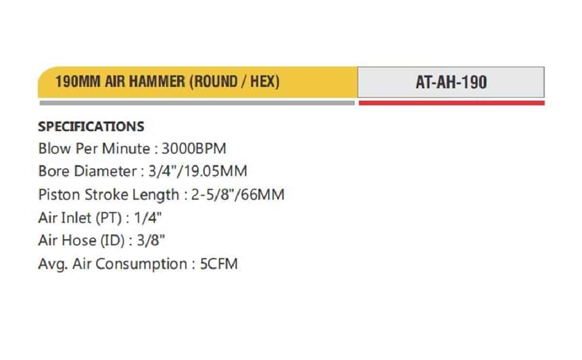 Home » Pneumatics » Pneumatic Tools » Professional Pneumatic Tools 190MM AIR HAMMER (ROUND / HEX)
