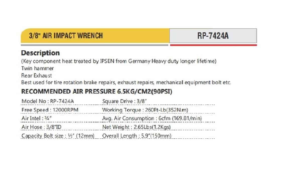 Home » Pneumatics » Pneumatic Tools » Professional Pneumatic Tools 3/8″ AIR IMPACT WRENCH