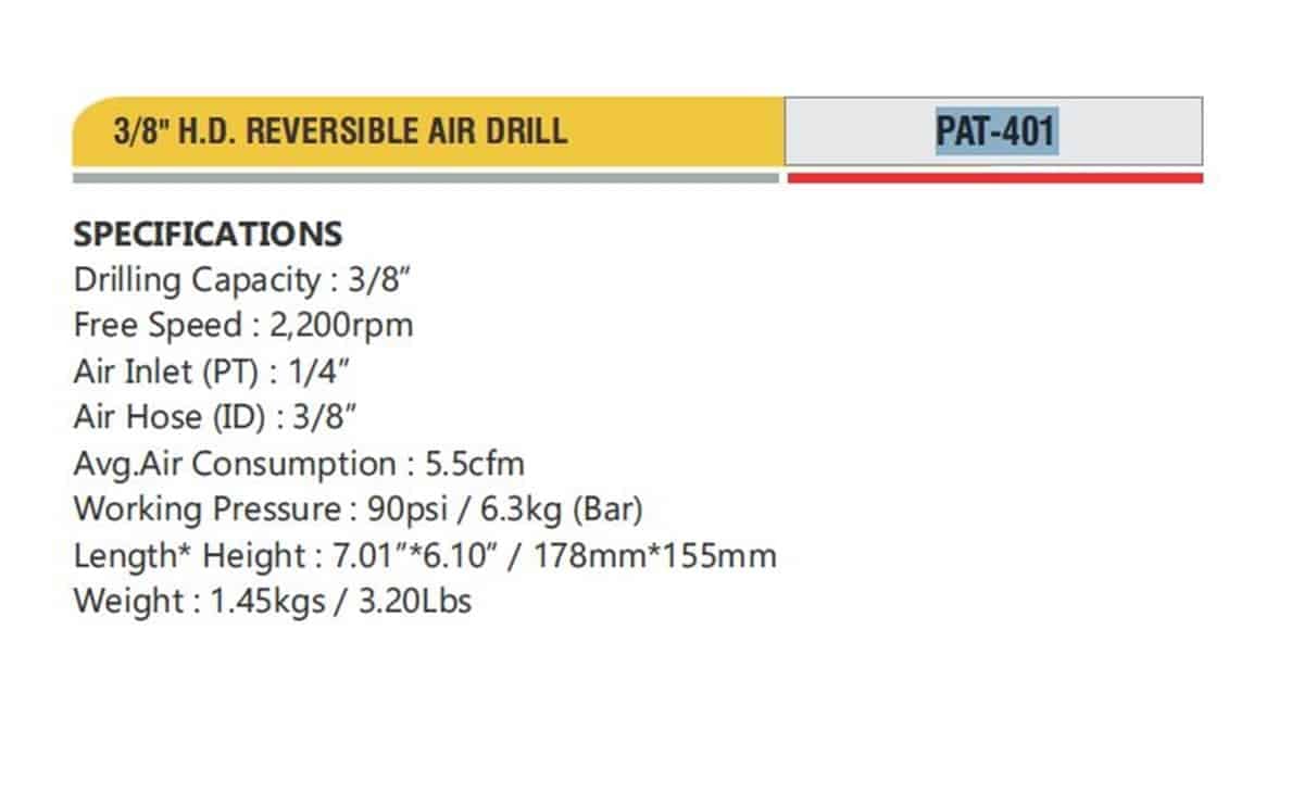 Home » Pneumatics » Pneumatic Tools » Professional Pneumatic Tools 3/8” H.D. REVERSIBLE AIR DRILL