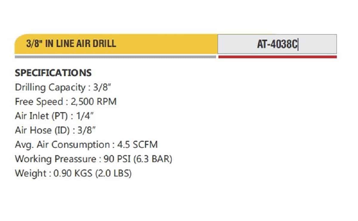 Home » Pneumatics » Pneumatic Tools » Professional Pneumatic Tools 3/8” IN LINE AIR DRILL