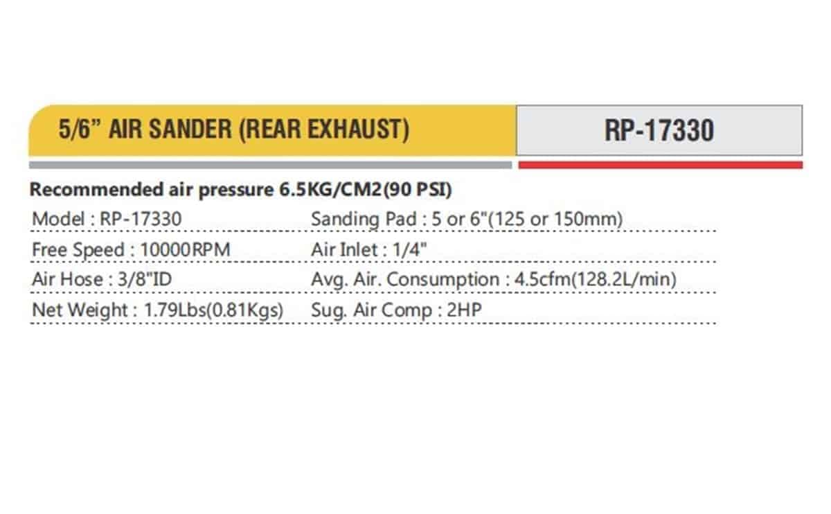 Home » Pneumatics » Pneumatic Tools » Professional Pneumatic Tools 5/6” AIR SANDER (REAR EXHAUST)