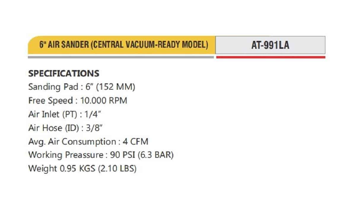 Home » Pneumatics » Pneumatic Tools » Professional Pneumatic Tools 6” AIR SANDER (CENTRAL VACUUM-READY MODEL)