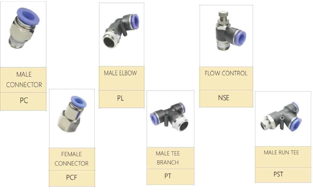 Pneumatic Push-in fittings are offered in a wide range of tube sizes, connections, and thread combinations to suit the desired outcome.