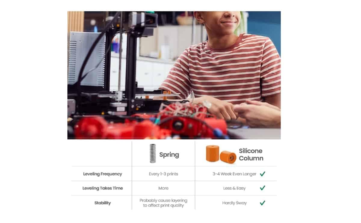 - These silicone buffers serve to replace on your heating bed original springs and your set would level remain.