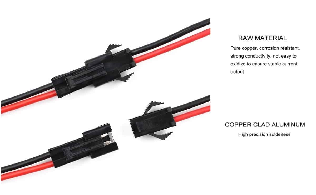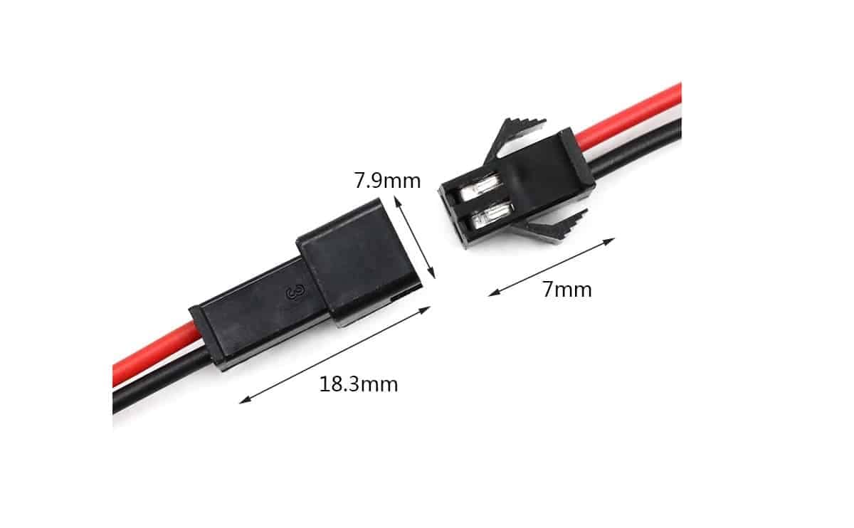 SM housing 2 pin plug male and female connector adapter with electrical cable wire for LED strips, LED wall-washers, LED underground light, LED belt light, curtain light, twinkle light and so on. This set of male and female electrical wires can be widely applied, such as mini remote control helicopter, indoor 3D plane, LED strips and twinkle light.