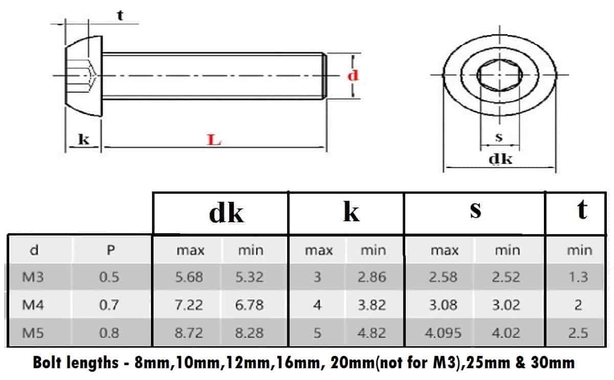 - Allen Head Bolts (M3/M4/M5 sizes – 8, 10, 12, 16, 20, 25, 30mm )