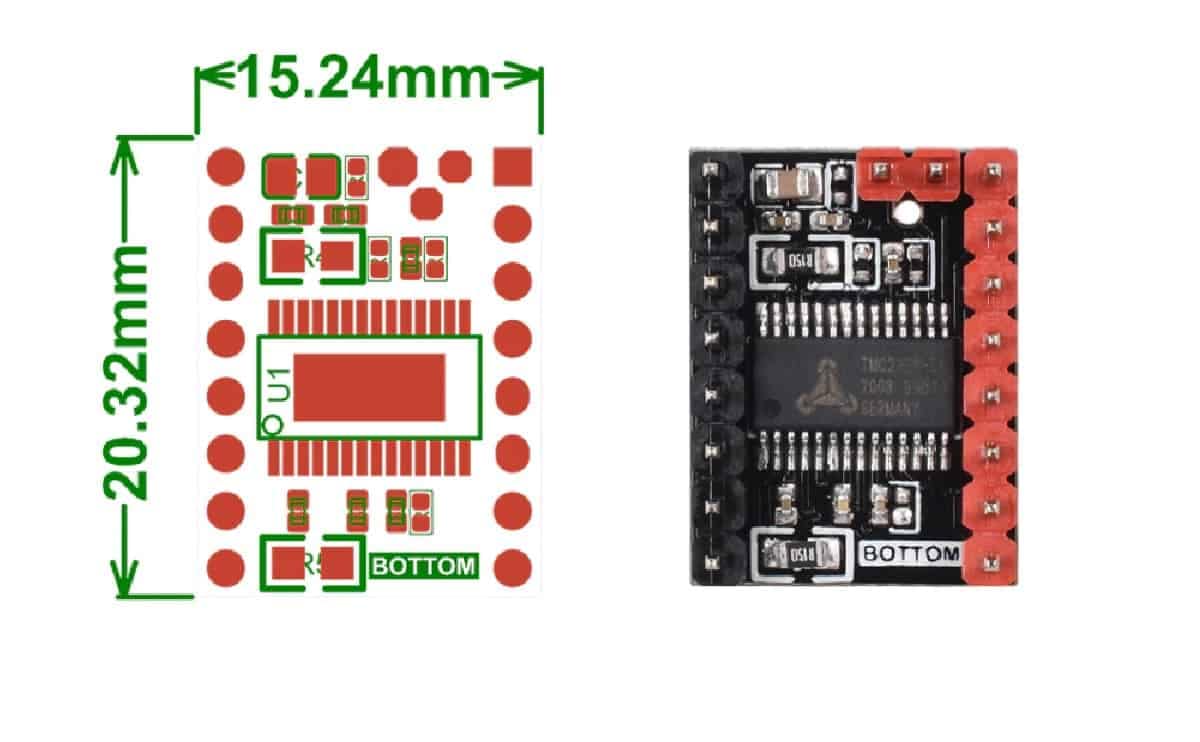 - The TMC2226 Driver v1.0 has compact dimensions, measuring 15mm x 20mm.