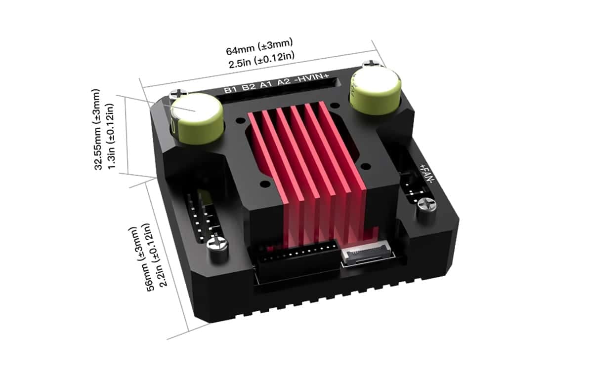 - Dimensions: TMC5160T Plus: 64 x 56 x 32.55mm