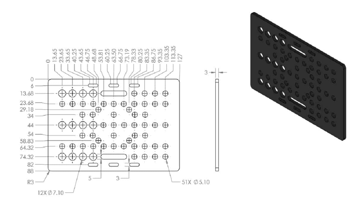 - The plate provides a stable and rigid platform for mounting various components such as motors, linear rails, and tooling.