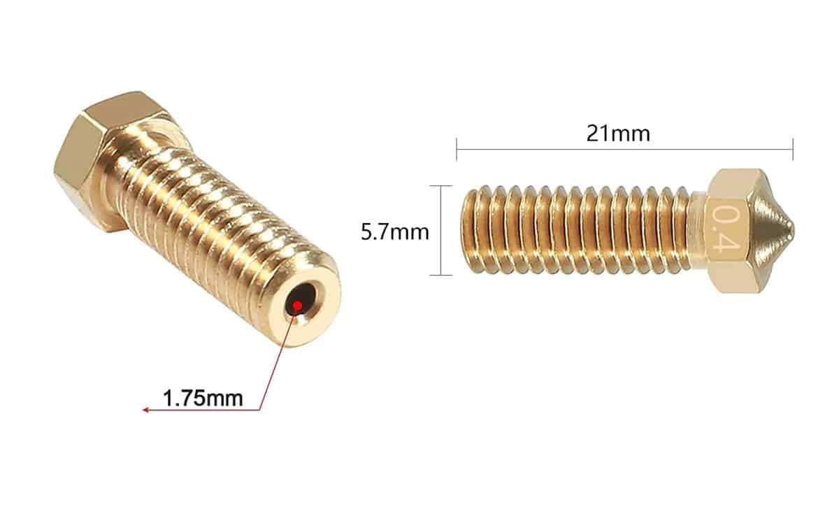 - The Volcano Nozzle E3DV6 is a M6 threaded brass nozzle specifically designed for 3D printers using 1.75mm filament.